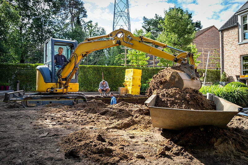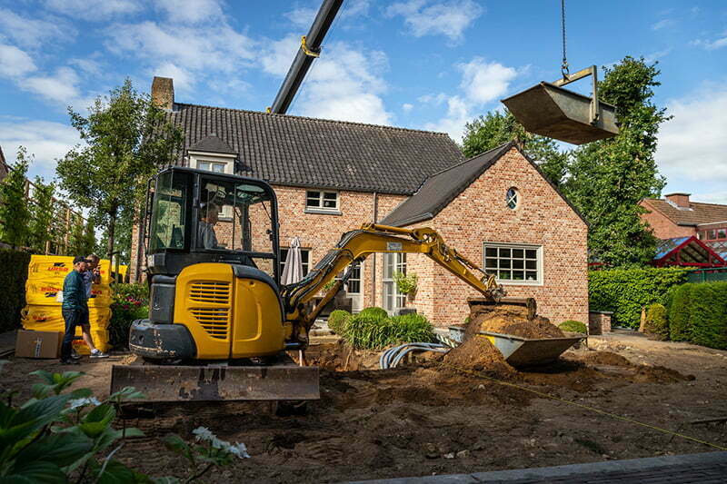 Niet alle tuinen zijn even makkelijk bereikbaar wat kan zorgen voor flinke logistieke problemen als u een tuinrenovatie uit wilt laten voeren. Hoe krijgt u de benodigde materialen en gereedschappen in de tuin? En hoe voert u grond aan en af? Bij Gert Kwanten gaan we gelukkig geen uitdaging uit de weg en kunnen we zelfs de meest ingewikkelde projecten voor u uitvoeren. Een goed voorbeeld daarvan is dit project met zwembad en kunstgras in Houthalen in Limburg. Doordat de tuin niet bereikbaar was voor grote machines, waren wij genoodzaakt een kraan te gebruiken en de benodigde materialen over het huis te takelen.